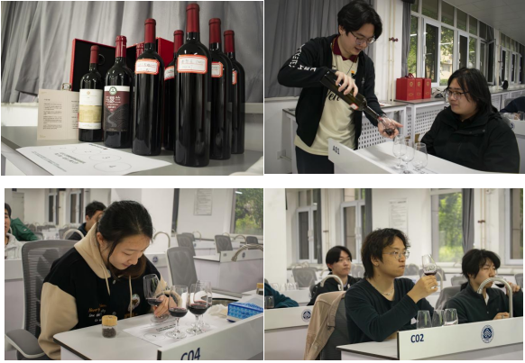 活动现场,主讲人卫峙成以风土与品种为核心视角,系统讲解北农文创葡萄酒的酿造理念、风味特点与工艺优势,并重点介绍了北京农学院酿酒葡萄订单农业项目入选第六届全球最佳减贫案例的突出成果,展现“政产学研用”协同创新赋能乡村振兴的生动实践。现场依次开展2款北农文创葡萄酒、2款本科生自酿葡萄酒的专业品鉴,沉浸式的科普与品鉴体验获得在场师生的广泛认可,充分展现了北农在葡萄酒研发、人才培养与成果转化方面的扎实功底。