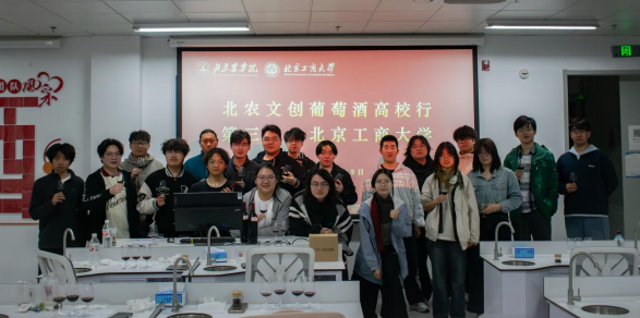 北农文创葡萄酒是北京农学院食品学院自主研发、校办企业转化落地的代表性科创成果,融合专业酿造工艺与校园文化内核,是学校科研成果市场化、社会化的重要载体。此系列活动落地三所高校,不仅扩大了北农文创葡萄酒的品牌影响力,更搭建起高校间食品学科交流、科创成果共享的优质平台。